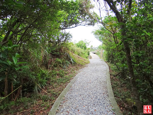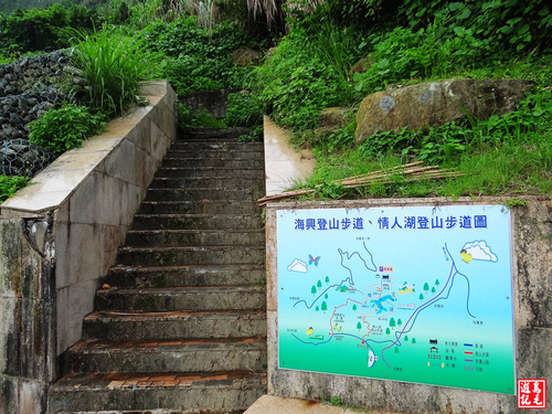 從紅綠燈土坡處起登,小爬約10分鐘來到鞍部叉(銜接情人湖環山步道),而賞景小徑則左轉循邊坡前進約10幾公尺,
