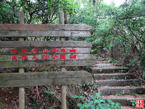 有時也不必堅持一定要臨著山崖劈路,賞景小徑又走入邊坡林間,叉路處右下又接情人湖環山步道,