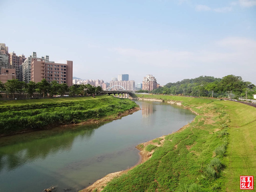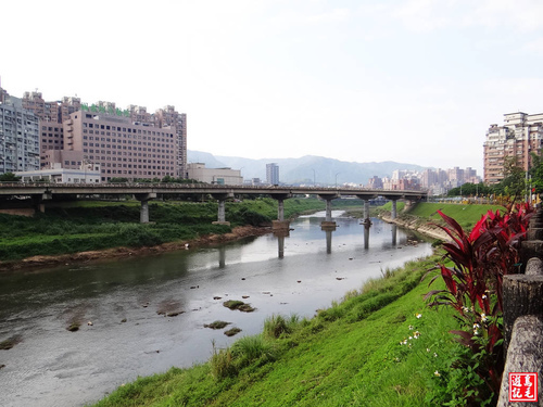 從新江北大橋過來後沿基隆河右岸走往五堵方向,河堤步道的上方是中山高熙來攘往的車流聲,近年來基隆河整治及增設員山仔分洪後,