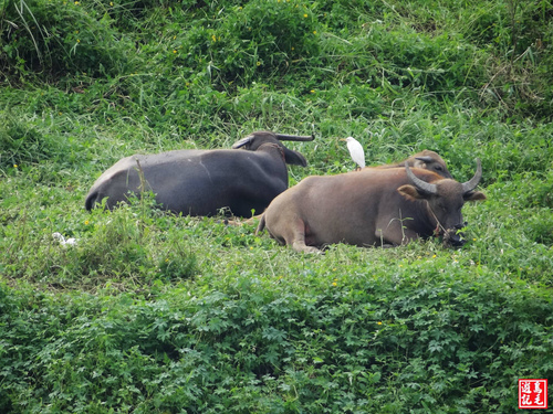 基隆河的沙丘上有白鷺鷥棲息或飛行,河岸的草皮上有幾隻水牛自在地吃草,一切都是這麼滴安詳、自然,休閒就是要放慢腳步,