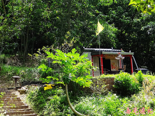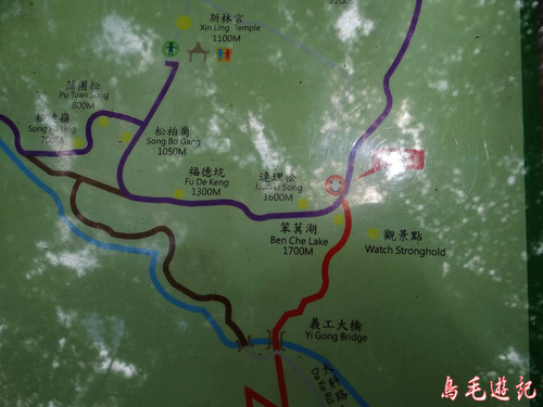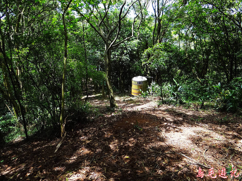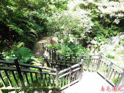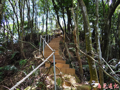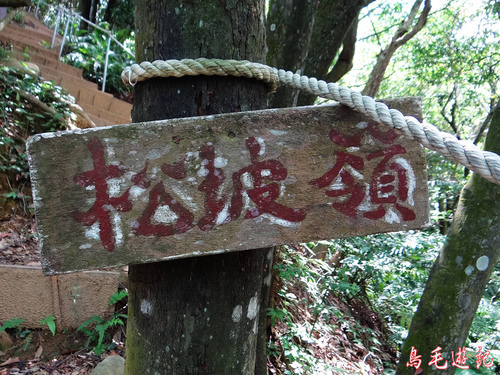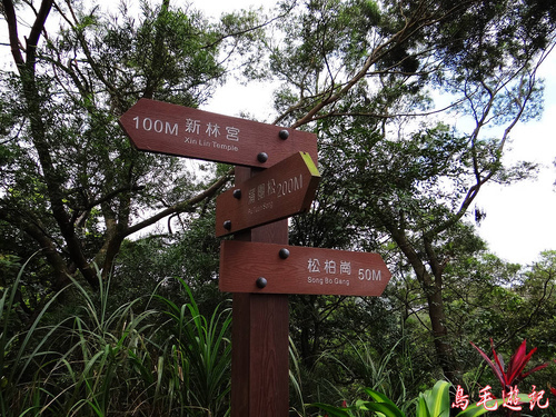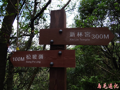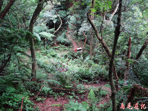 再遇叉路,左路出新林宮,取右下松柏崗方向。木架土梯一路陡下,途中叉路遇當地熱心義工在蘇迪勒風災後勘查路況,