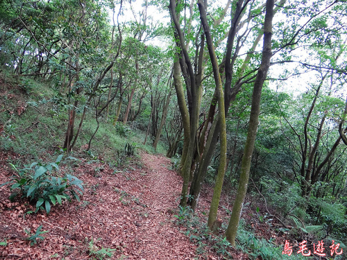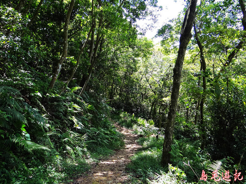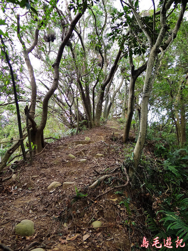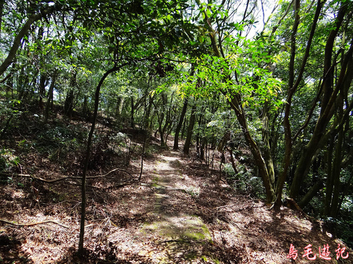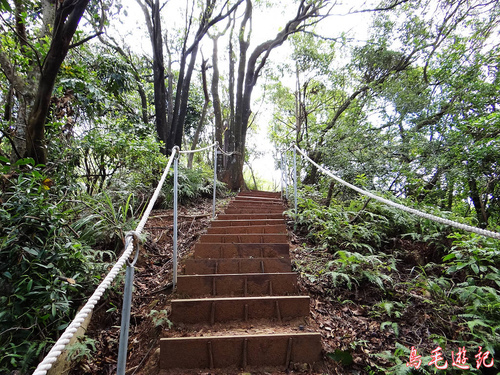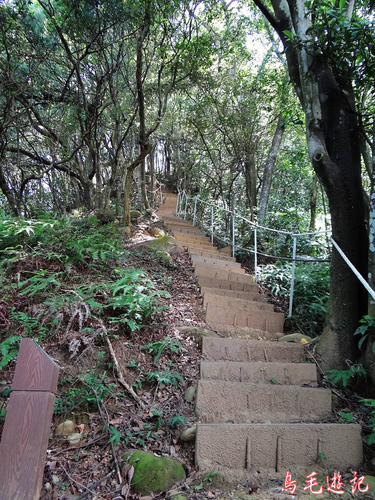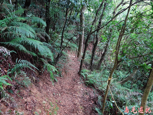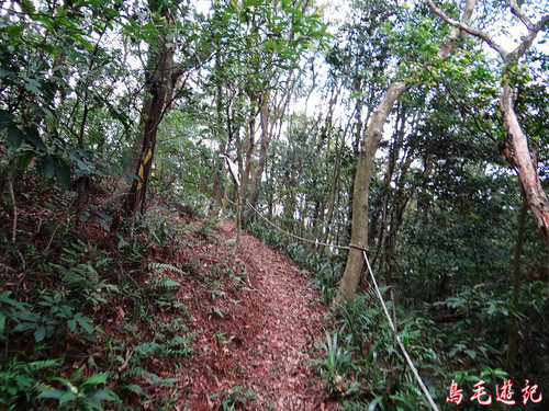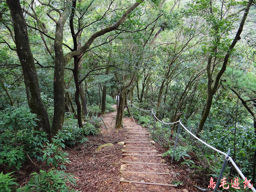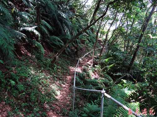這是一條自然森林步道,除了坡道段設有木架階梯及繩索護欄外,都保留原始的土石路。