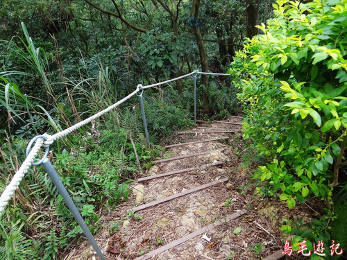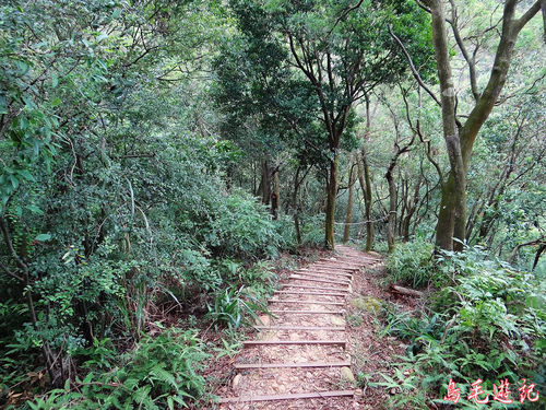 山腰路一小段後出現木架階梯,而且愈爬愈陡,真的有夠陡的。