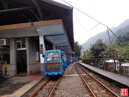 沿著階梯爬上台車烏來站,台車的營業時間是08:00~17:00,隸屬林務局新竹林區管理處經營管理。