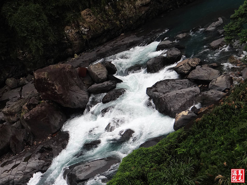步行前往烏來瀑布,山高谷深水常流,遠遠就聽到瀑聲霹靂啪啦迴盪在山谷之間。