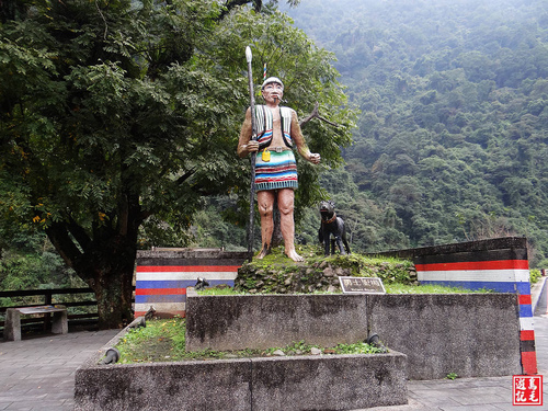 烏來瀑布平台旁為勇士廣場,設有原住民勇士與獵犬雕塑。 103.12.13