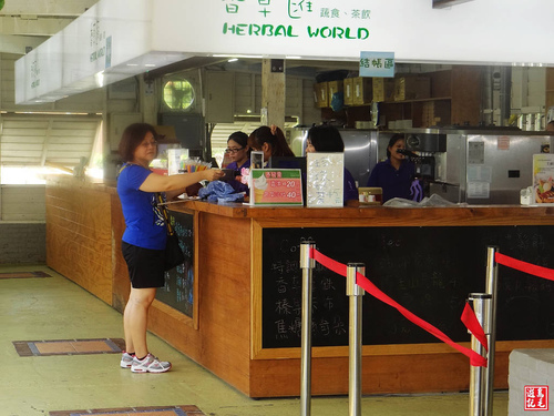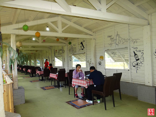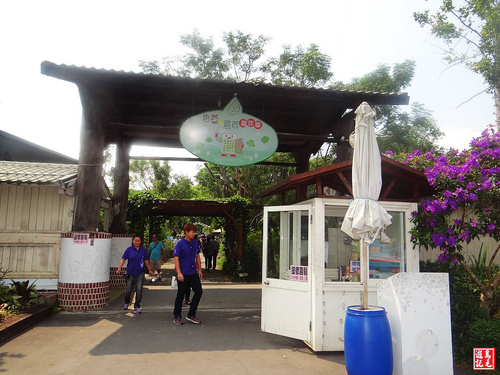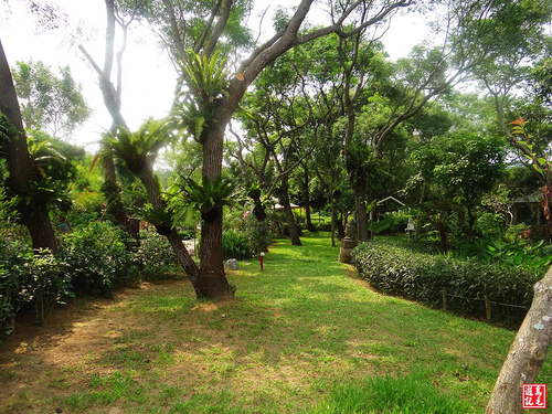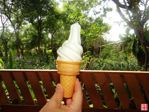 入園之後,就看到草皮綠地與樹木,環境相當清幽,天氣很熱,旁邊還有一家香草匯,提供蔬菜沙拉、霜淇淋及茶飲消費,坐在靠窗的位置,