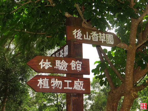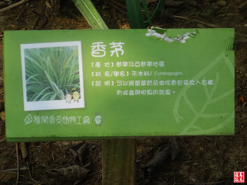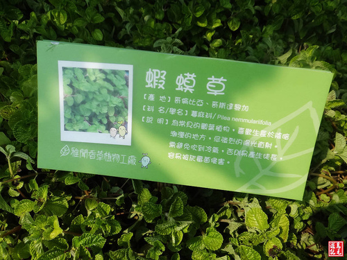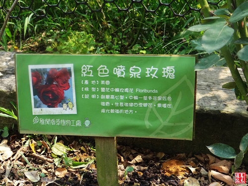 香草園區栽植各類香草,香茅、彩葉草、蝦蟆草、迷迭香...,並設有解說牌介紹其產地及用途,讓遊客對香草植物有更進一步認識。