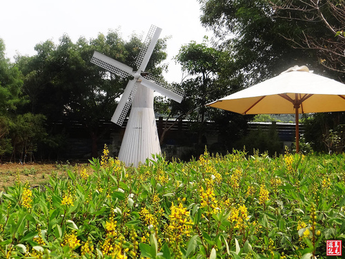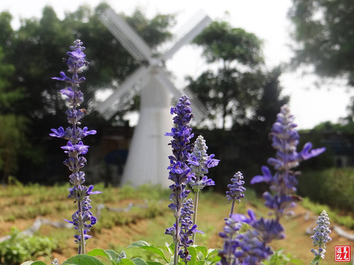 在體驗館旁有一白色荷蘭風車造型,搭配北海道紫色薰衣草或金黃花海,浪漫指數破表。