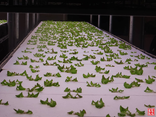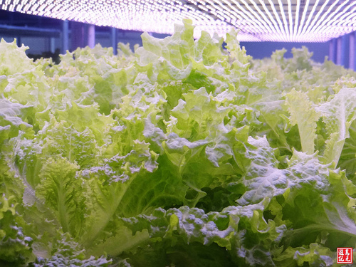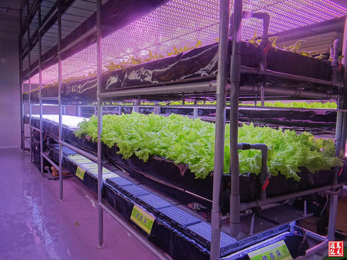 植物工廠用LED種菜,利用科技恆溫、恆濕控制的無菌室,空間寬敞採透明玻璃隔間,