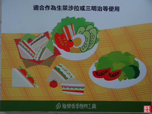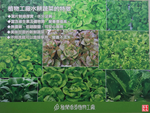 雅聞香草植物工廠還精心設計各式大型圖示,介紹植物工廠水耕蔬菜的特徵、營養比較表及生長管理過程,真是科技加專業,就是要讓消費者吃的安心。