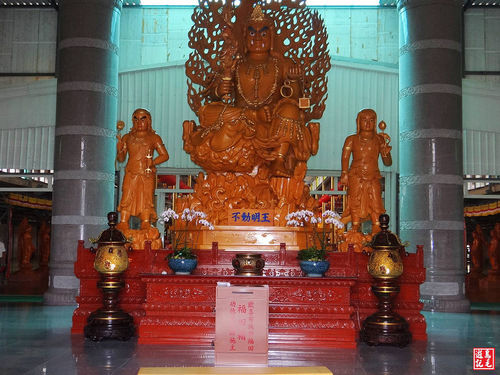 登上台階,進入寺內,主殿供奉不動明王,左右有降三世明王、金鋼夜叉明王、大威德明王及軍茶利明王。