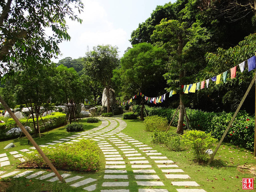 壇城後面是沙彌親子公園及石林景觀、遊憩小涼亭,小沙彌神態自若,造型維妙維肖。