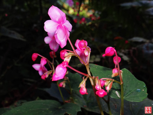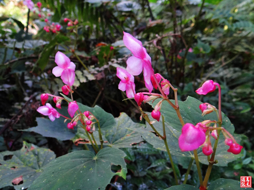步道兩旁水鴨腳秋海棠花盛開,粉紅色的小花更添步道幽雅清新,她迎風搖曳正熱情地歡迎遊客到來!
