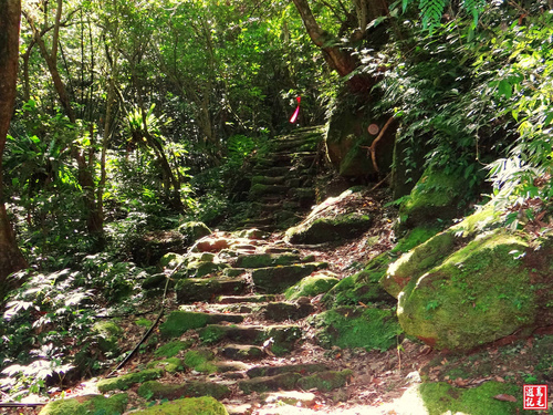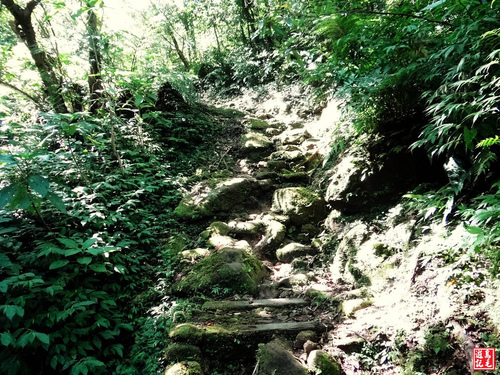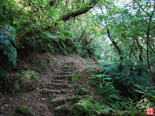 踩著輕鬆步伐,通過綠光竹影經典路段,再往前出現綠意斑駁石階,古道幽幽,真箇耐人尋味呀。