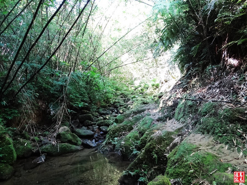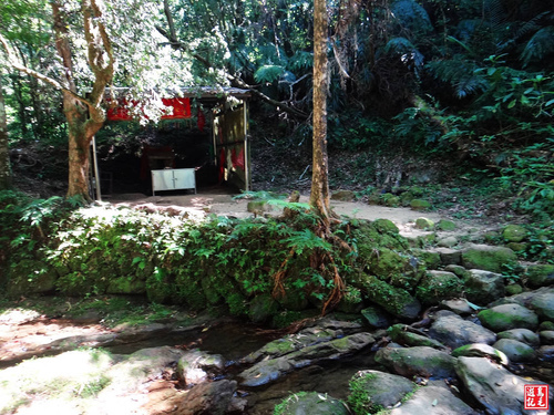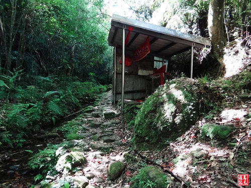 一小段陡坡爬上之後是雙土地公廟,位於小溪左右兩側,繼續沿溪畔前進。
