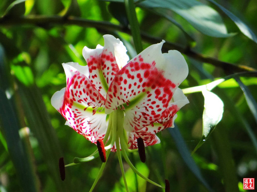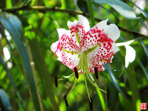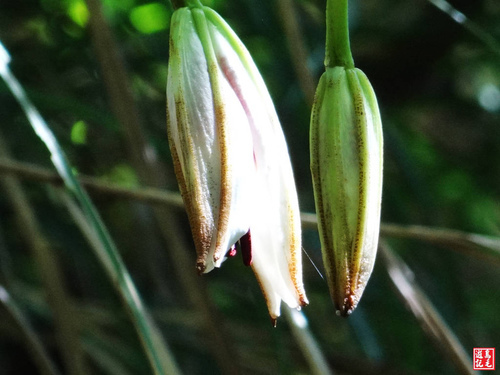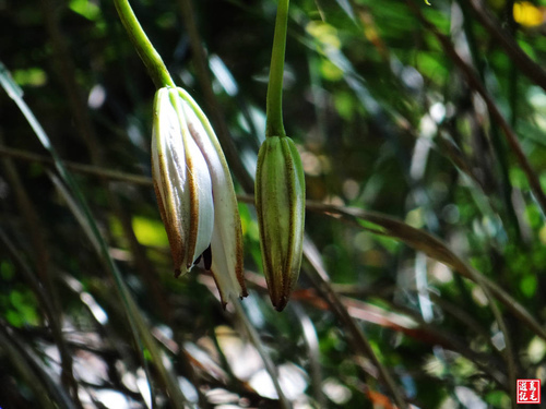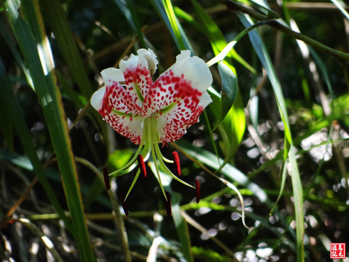 賓果~~果然我上次看到的未開花的株欉係金A,不是我眼花,高掛在岩壁上的艷紅鹿子百合,花雖小,卻是可愛極了!
