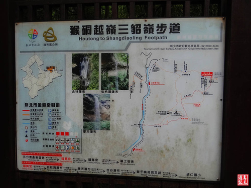 中坑、柴寮古道:10:02瀑頂叉路→10:09福興宮→10:29福龍宮→10:58溪畔瀑布→11:17獅子嘴奇岩叉→11:46礦工宿舍→12:03猴硐車站