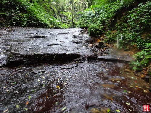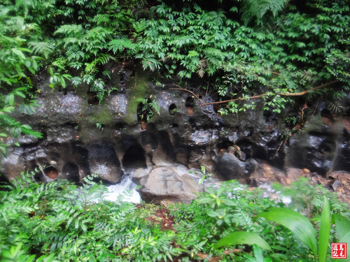 經過3.2K里程樁,再溯溪谷上行約1-20公尺,然後銜接對岸步道,岩石表面粗糙卻不會濕滑。