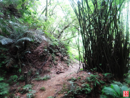 跨越枇杷洞瀑頂溪谷之後,一小段石階上爬,然後是平緩的竹林小徑。