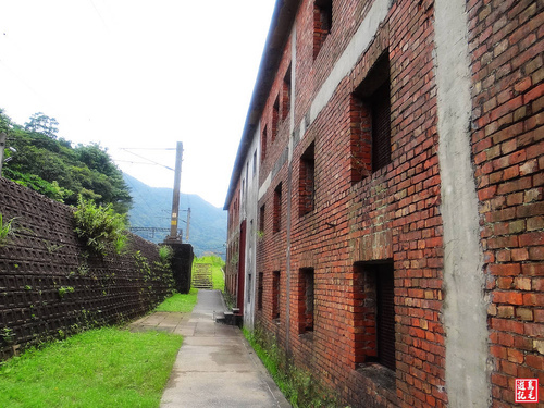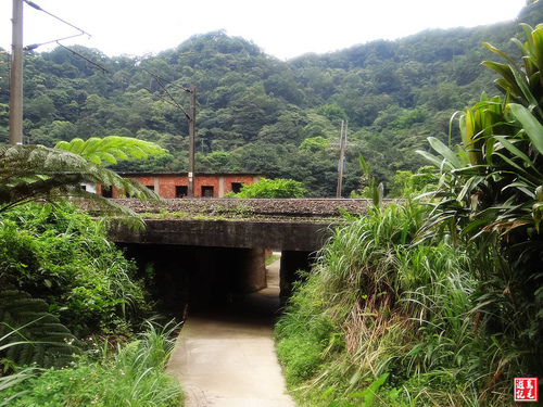 步道終點石階下來,續走水泥路,鑽過鐵路箱涵後,就是以前的礦工宿舍。