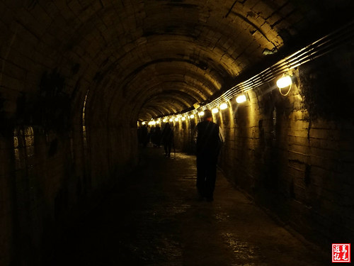 坑道主體為水泥結構,設有燈光照明,依照海面風向不同,今天從坑口進來坑道是順風方向,風從後面吹來,這坑道如果夏天來可享受自然冷氣呢。