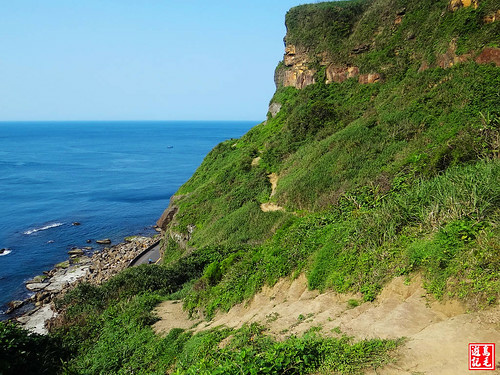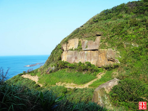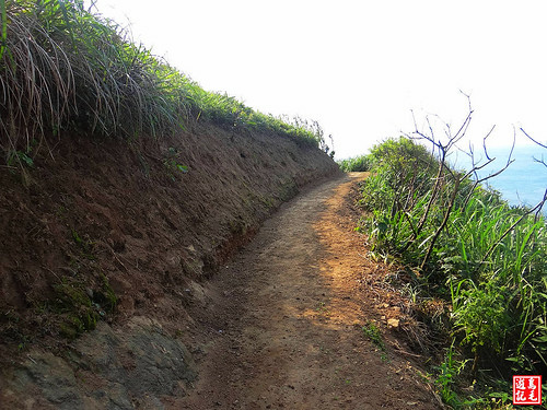 這條步道是很自然樸素的土路,漸緩坡爬升,沿山腰崖邊左轉,眼前視野豁然開朗,湛藍的海洋天際之間,鋪陳出山海壯闊麗景,唯有瀟灑漫步神遊!