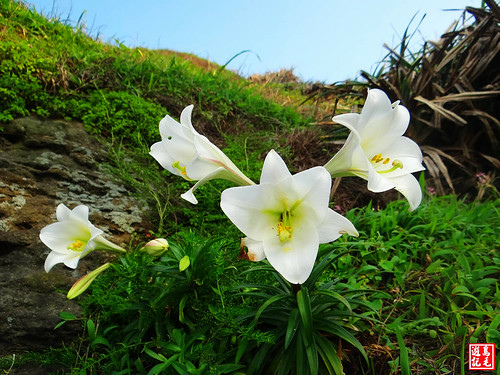 從公路旁階梯爬上來,已發現步道旁有許多含苞待放的野百合,在如此寬闊的步道上,欣賞海岸景色,實在很適合帶妞來散步的。