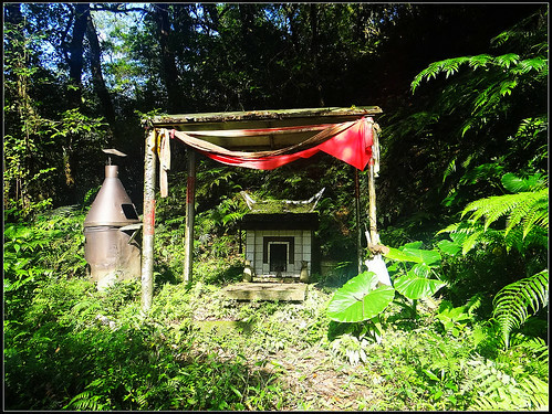 離開第一處聚落遺址續行2-3分鐘,路旁有一荒廢的小土地公廟,