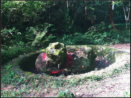 土地公廟前就是石龜將軍處,牠的龜頭、龜身輪廓清晰,週圍用石塊築起圓形護牆,穿鑿附會是玄天上帝下凡的龜將軍吧。