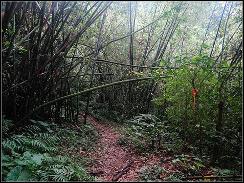 決定先上切產道一探,從林間陡坡爬上一小段,接產道往左續行。