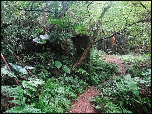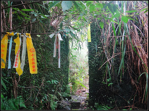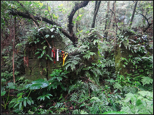 凡 古道所經之處,皆踩著先人走過的路,越溪2分鐘後又經過第二處乾坑聚落遺址,同樣的石頭殘牆附滿青苔,雜草叢生,