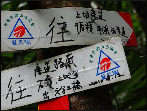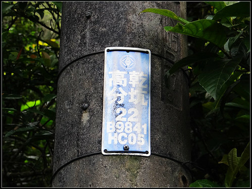 芒花道出來接水泥路續走,至「乾坑高分22」電桿,有藍天隊指標,續直行產道可出十分,上切產道循稜往平湖西步道。