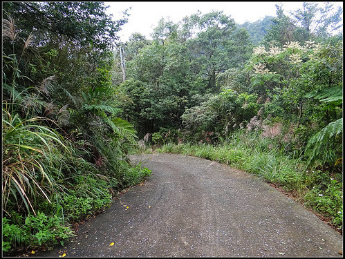 約7-8分鐘產道路盡成小土路,再往前竟是芒草區且路跡不明,耳際似乎聽到阿母的叮嚀,歹路不通行,嗯~做乖子還是撤退吧!