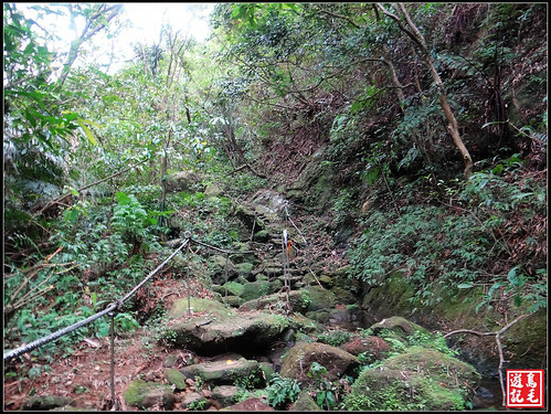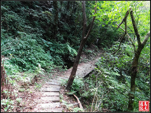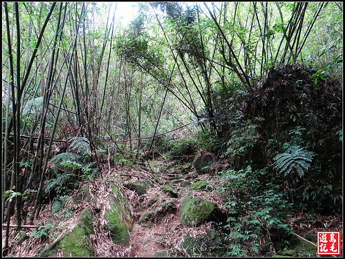 石塊階梯滿覆青苔,小心行走慎防溼滑跌倒。