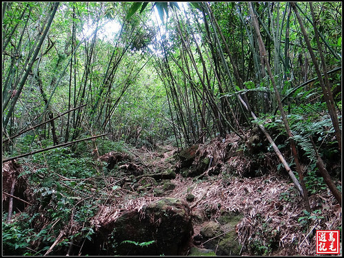 山凹叉路處取右緩下,沿途兩旁雜草已有清理過,走起來感覺相當清幽且輕鬆,從綠竹林下來越過小溪便接到東勢格越嶺步道主線。