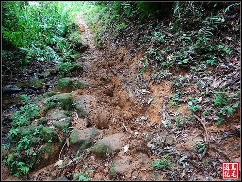 經過一小段溯溪,有古厝地防風竹籬,溪旁也有農墾遺址,Fuli提醒我要注意一下有無牛隻蹤影,