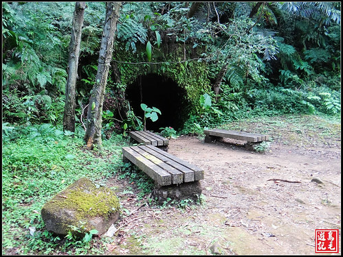 從雙土地公下來,越過水泥小橋,旁有一縷絹絲小瀑,溪旁有昔日礦坑遺址。