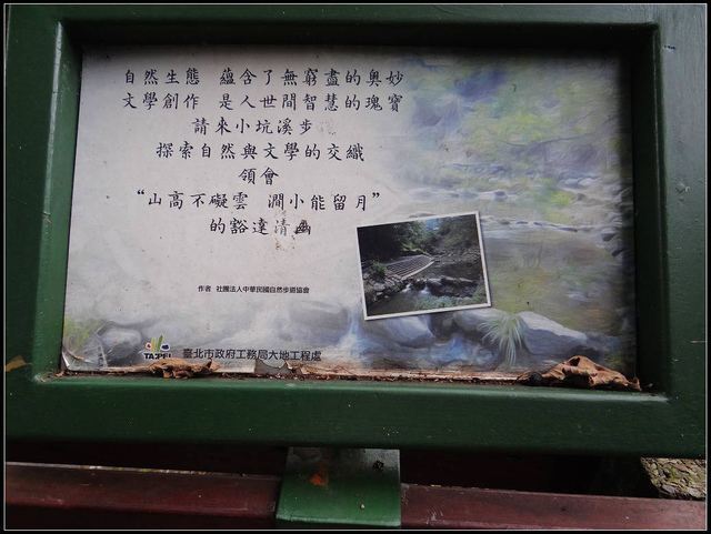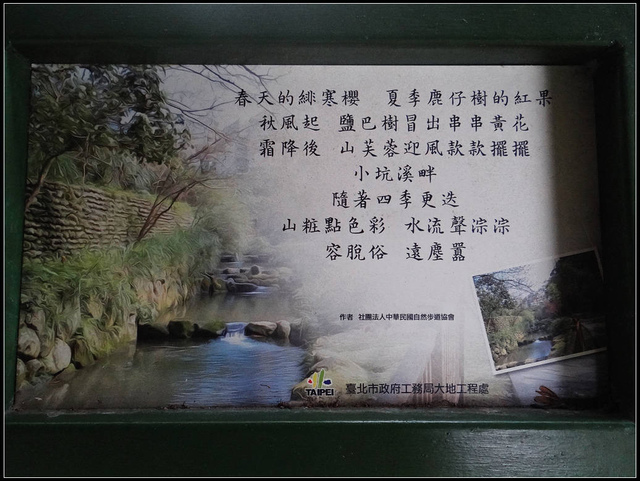 而精緻短小如文山區小坑溪畔的親水文學步道,就是最清淺易懂的可愛童詩了。」看到以上這一段台北市政府官網的引述真得很讓人心動。
