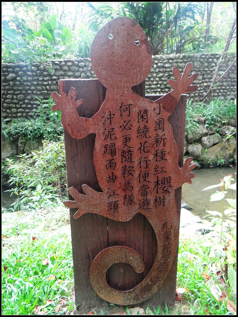 再加上沿途融合名家文學造詣菁華,採用蝴蝶、蜻蜓、蝸牛、壁虎等造型的詩詞,讀來頗有藝術氣息的陶冶。