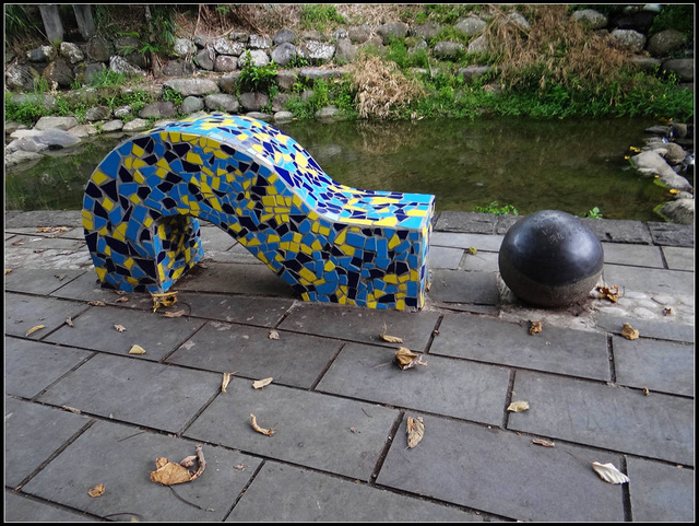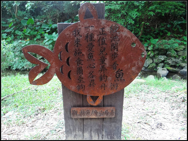 小坑溪清澈見底,魚蝦悠遊,經過「句號觀魚游」,座在圓形的句號椅休息一下,也很好玩呢!