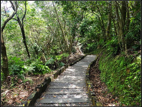 平緩好走又清幽的泥土路,大步邁進,繼一段石階之後,又是路況甚佳,景色優美的林間步道。
