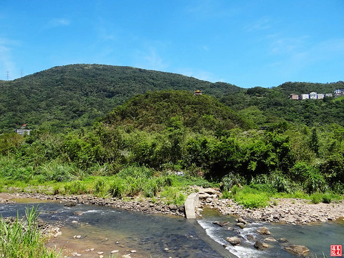 我的第一個目標是山丘上的觀景亭,萬里橋頭下車之後,行走左岸往忠福宮方向,經過陸橋到達忠福社區的忠福宮。