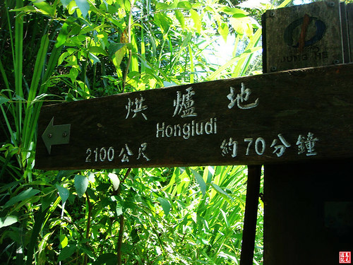休息後續直行往下一小段,路左有叉路石階,指標烘爐地2100公尺/約70分。