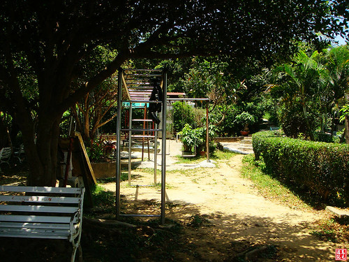 稜線步道環境清幽,遍植櫻花樹,天氣炎熱,蟬鳴不絕,好在有陣陣涼風吹拂,吹得人心神舒爽,就在途中小公園處再休息一下。