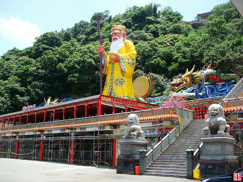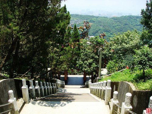 寬大石階下來,到達南山福德宮財神殿,旁邊有遊客中心,天氣炎熱,趕緊入內買瓶冰涼飲料解渴。 102.6.28 晴