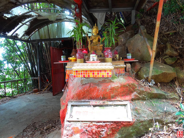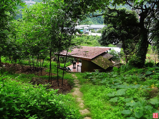 很快的從竹林階梯下來,擺脫一股不安的感覺,途中有福德廟,休息一下,再從民宅菜園中小路出來。