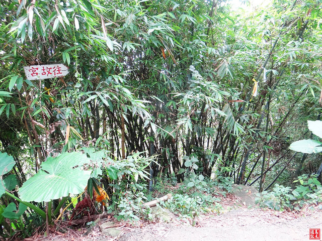 休息站下坡一小段,路右竹仔園有叉路,拾階陡下,指標往故宮博物院。