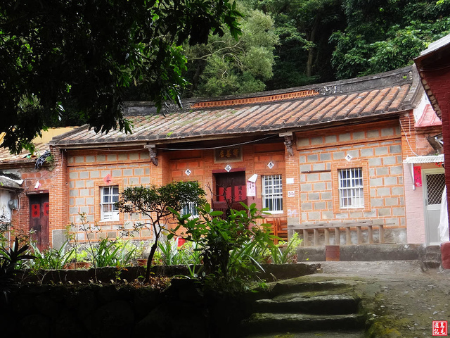 取右,經擇善居門前過,擇善居是一座傳統的紅色磚瓦厝三合院,目前還有人生活居住。