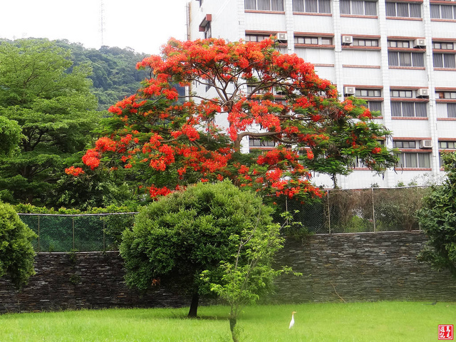原住民文化主題公園內茵茵綠草,六月鳳凰花開,蟬聲嘶鳴,白鷺鷥輕盈地飛翔在水池與草地上。 102.6.22 天氣:晴朗炎熱